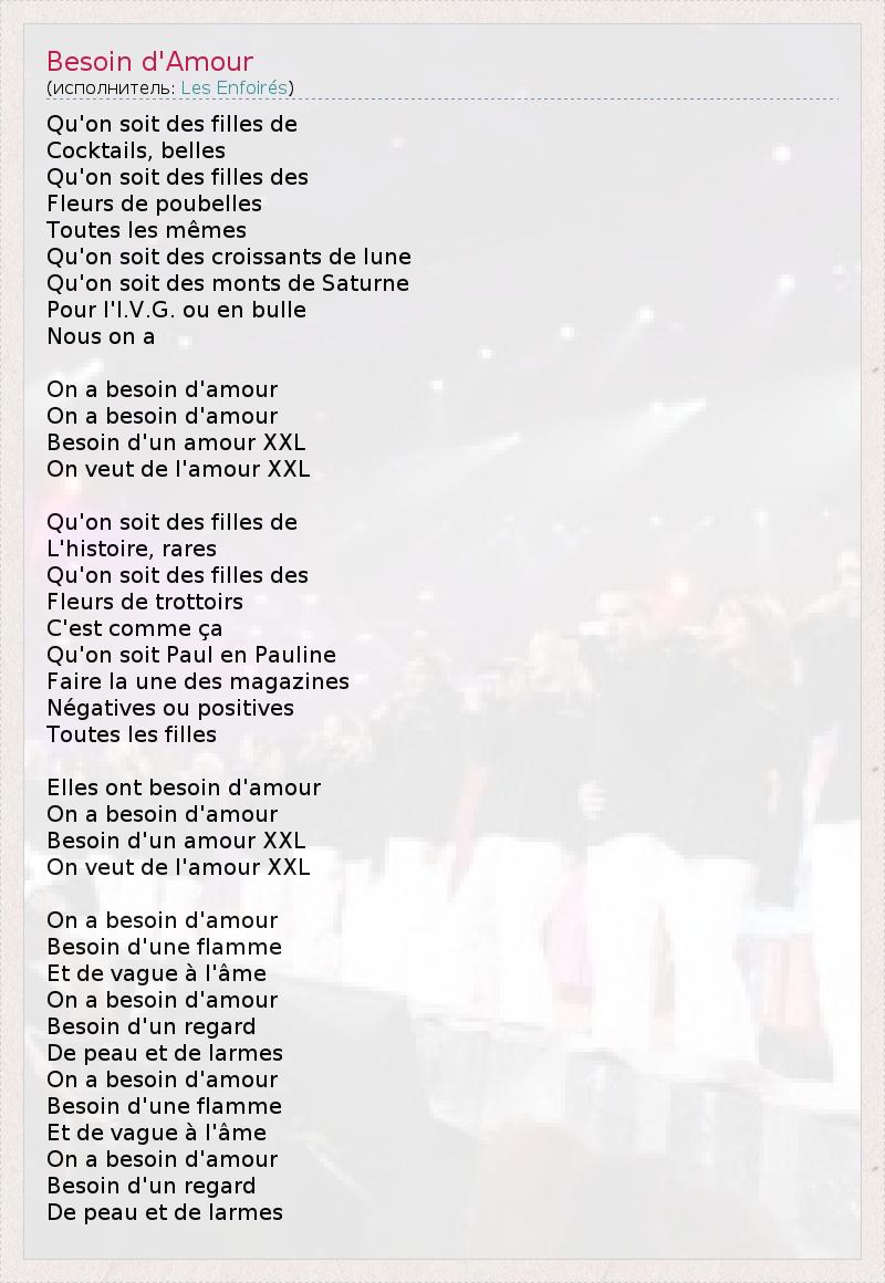 А как ты думаешь, о чем песня "Besoin d'Amour" ?