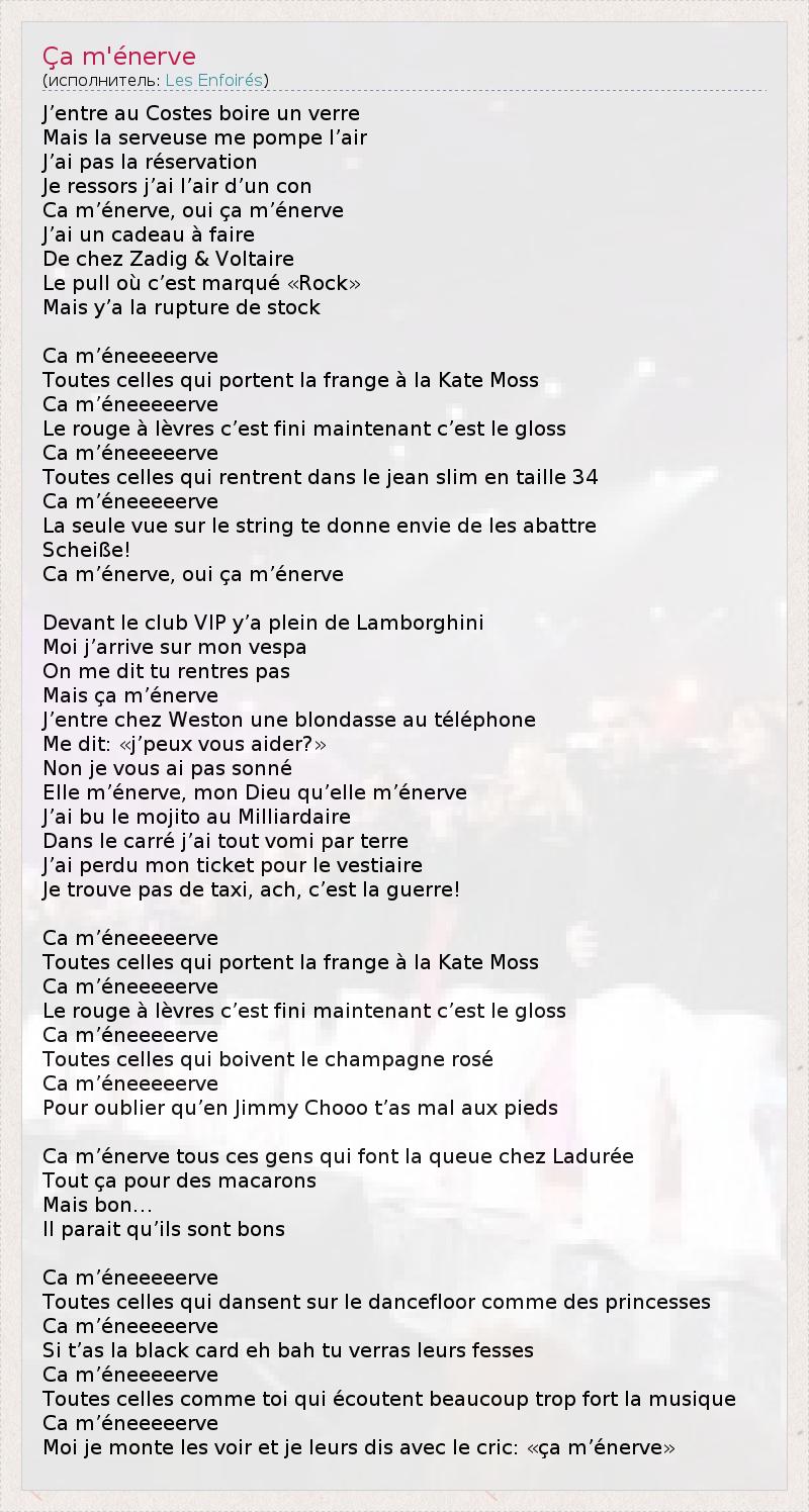 А как ты думаешь, о чем песня "Ça m'énerve" ?