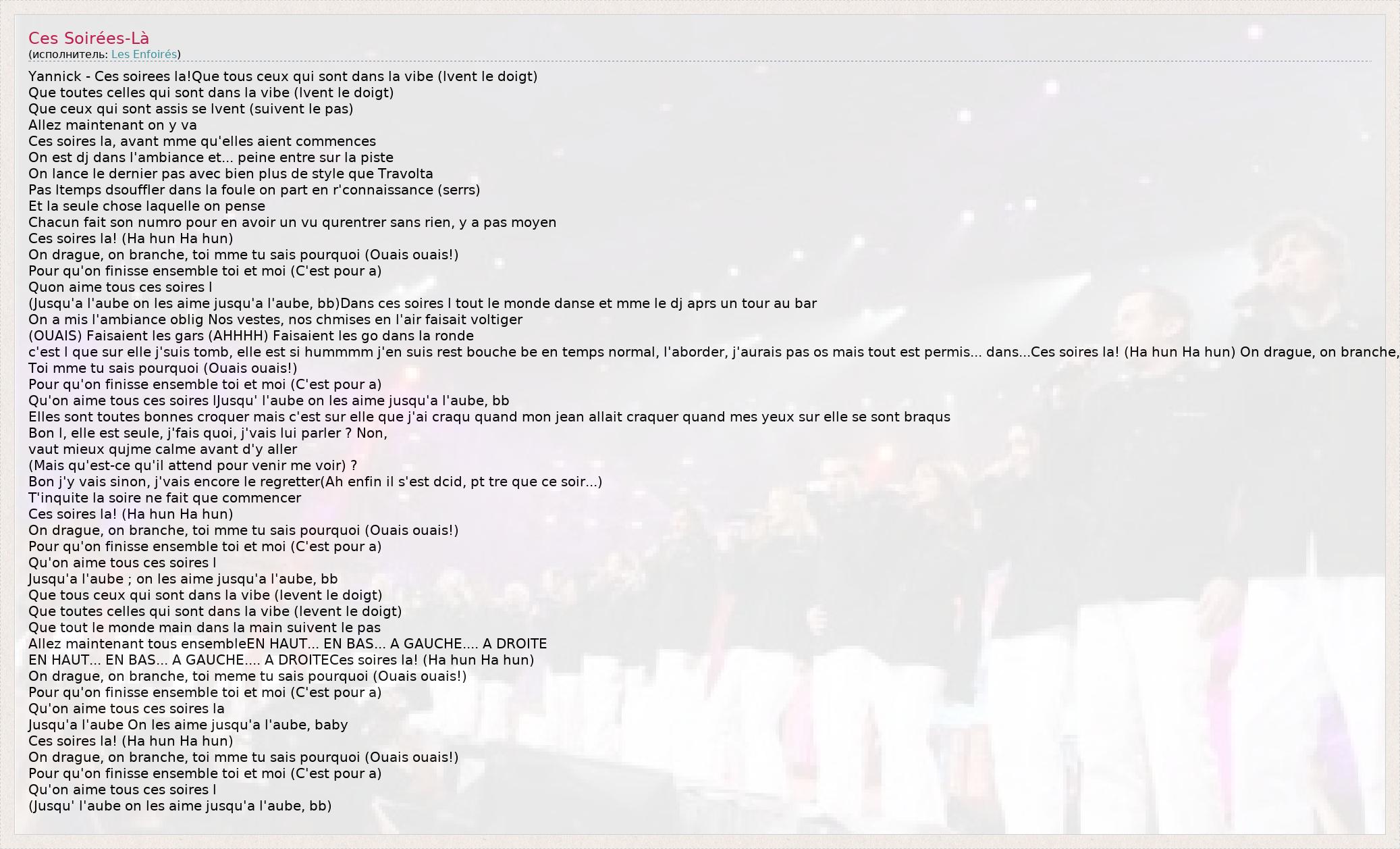 А как ты думаешь, о чем песня "Ces Soirées-Là" ?