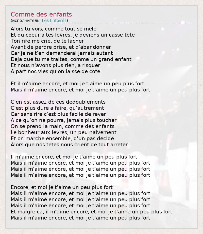 А как ты думаешь, о чем песня "Comme des enfants" ?