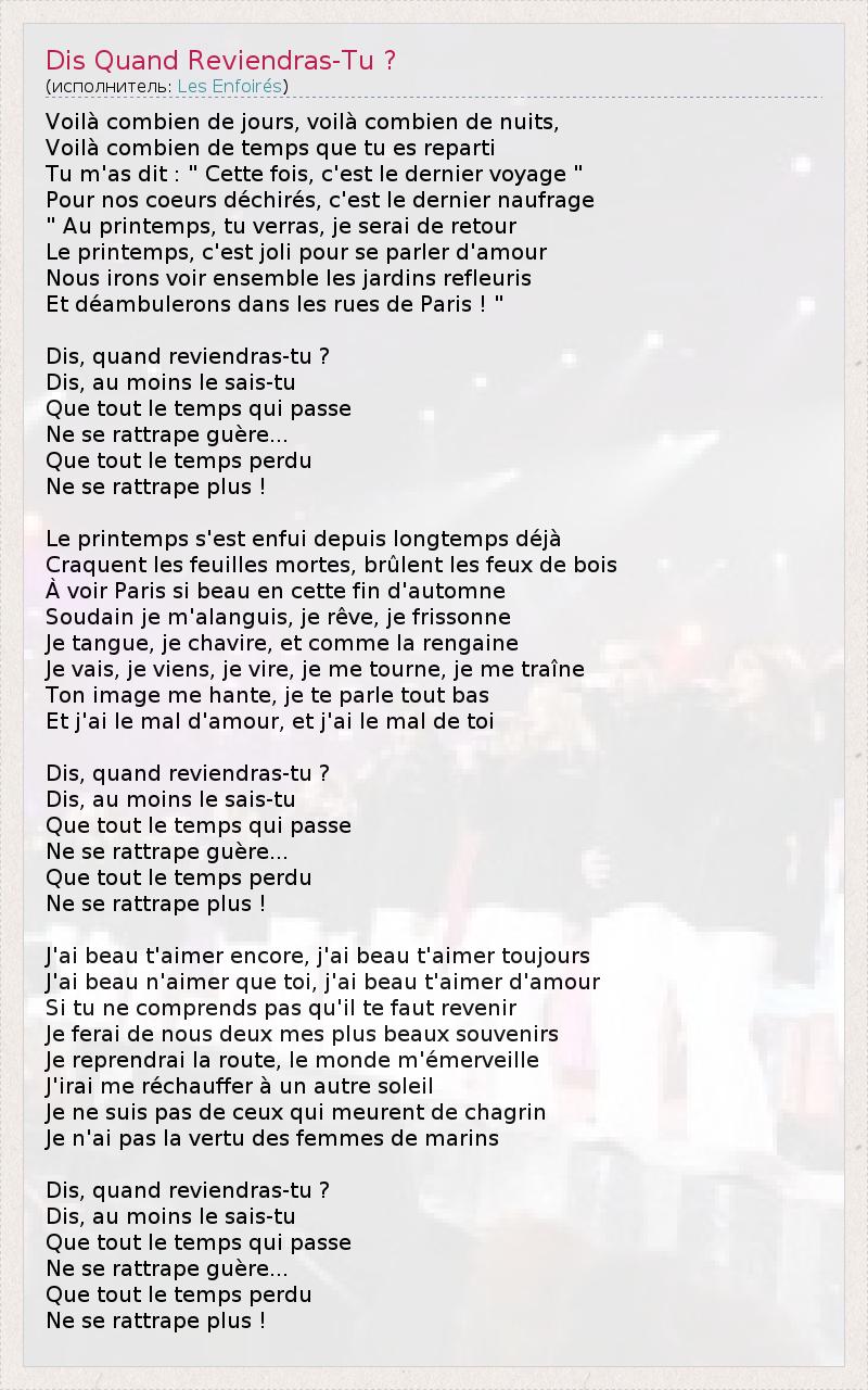 А как ты думаешь, о чем песня "Dis Quand Reviendras-Tu ?" ?