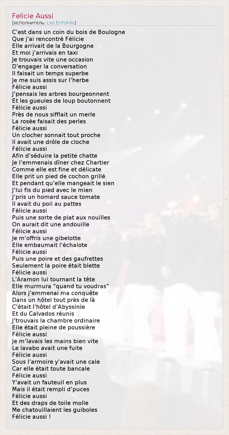 А как ты думаешь, о чем песня "Felicie Aussi" ?