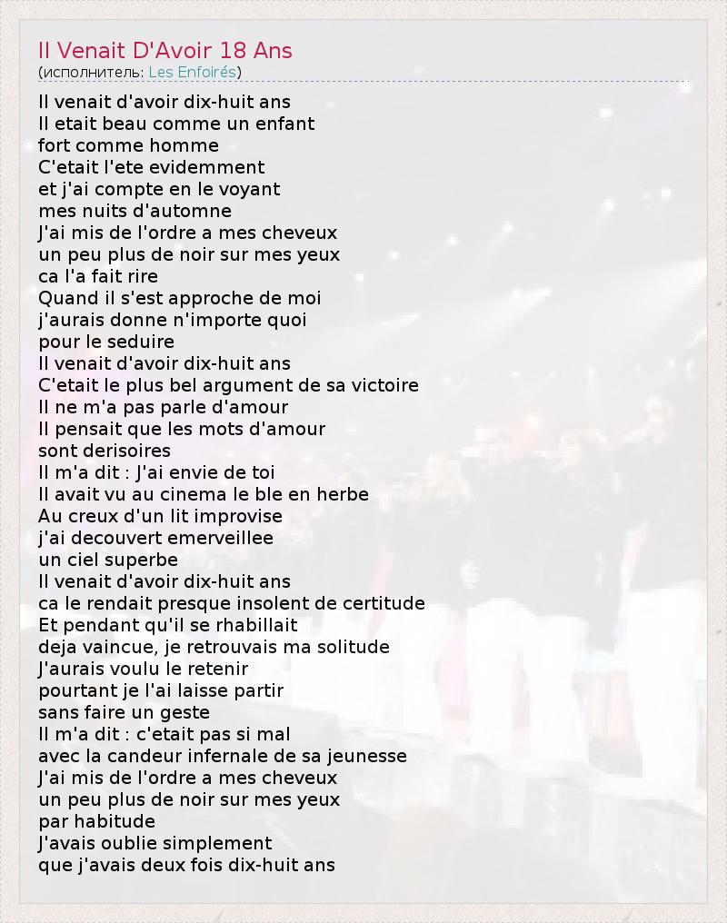 А как ты думаешь, о чем песня "Il Venait D'Avoir 18 Ans" ?