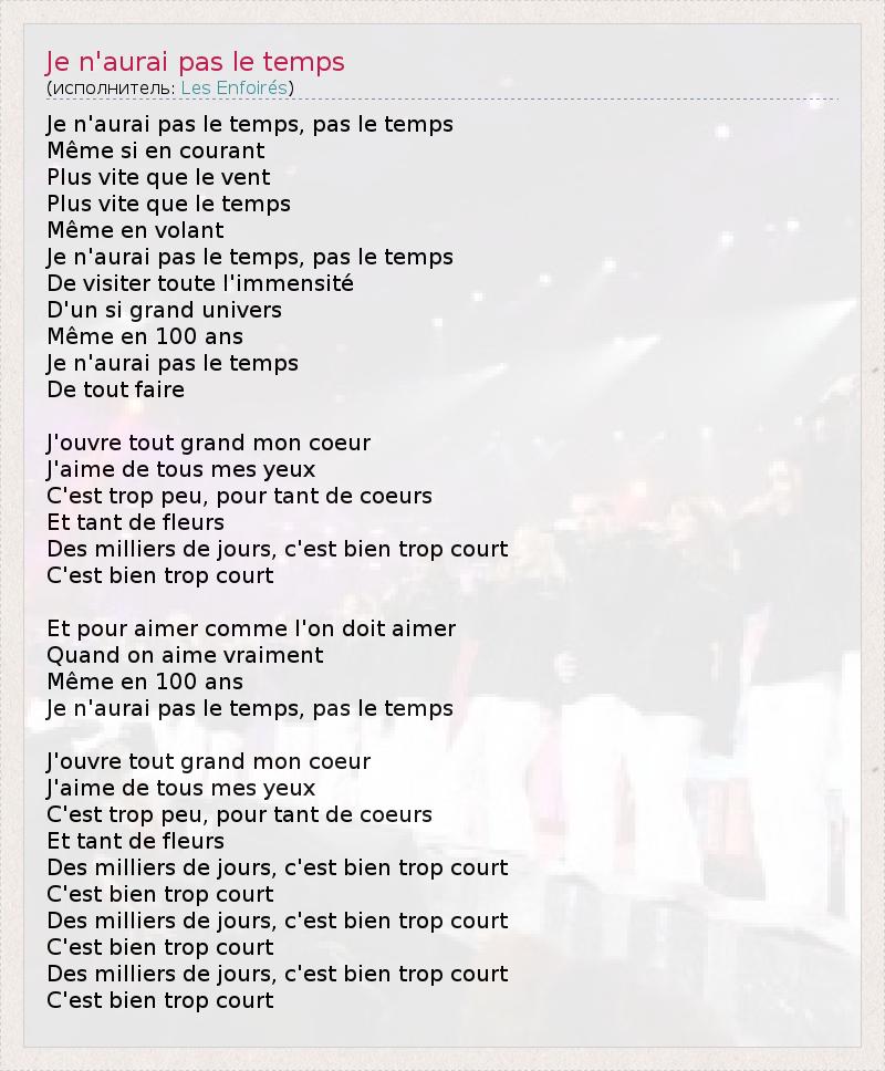А как ты думаешь, о чем песня "Je n'aurai pas le temps" ?