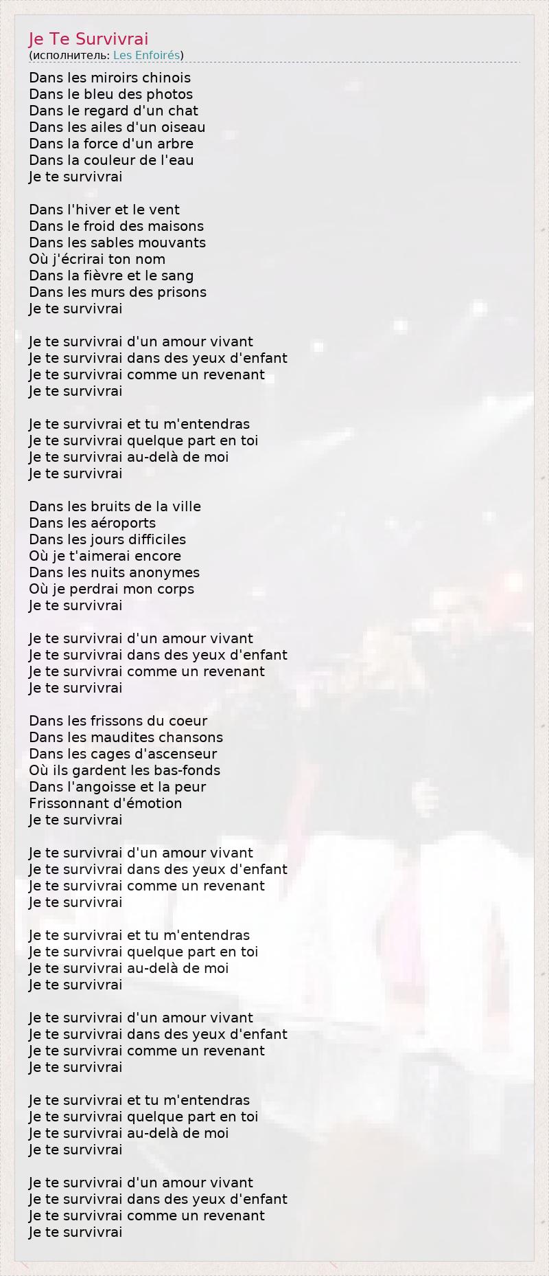 А как ты думаешь, о чем песня "Je Te Survivrai" ?