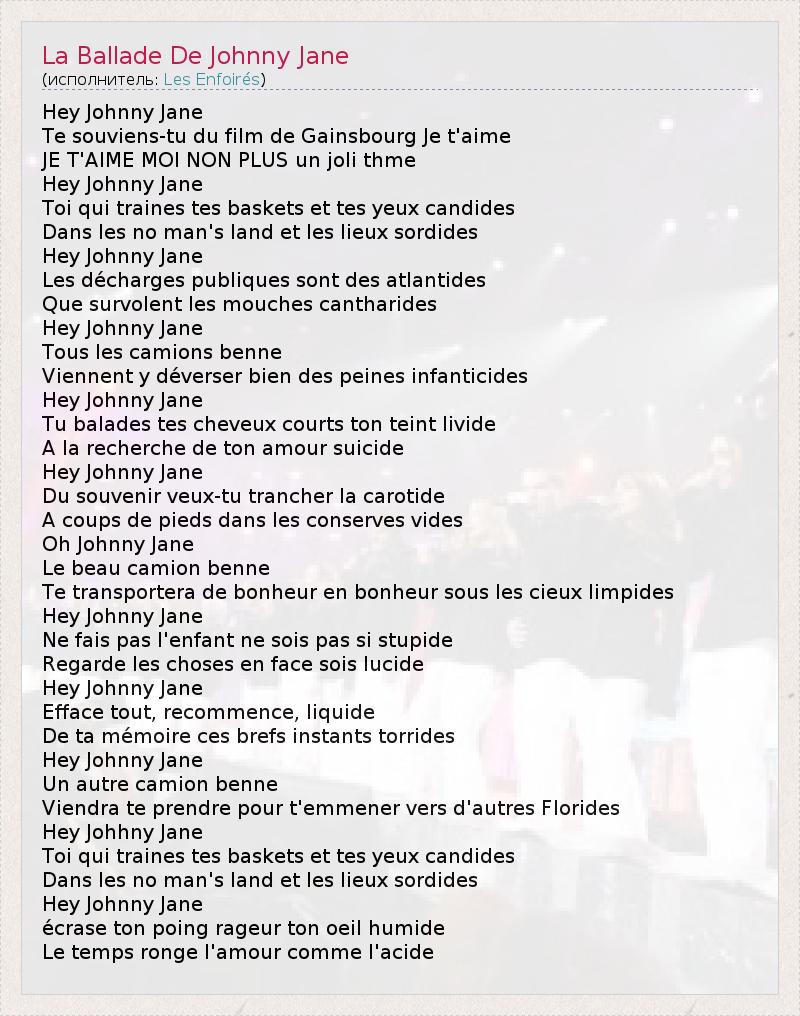 А как ты думаешь, о чем песня "La Ballade De Johnny Jane" ?