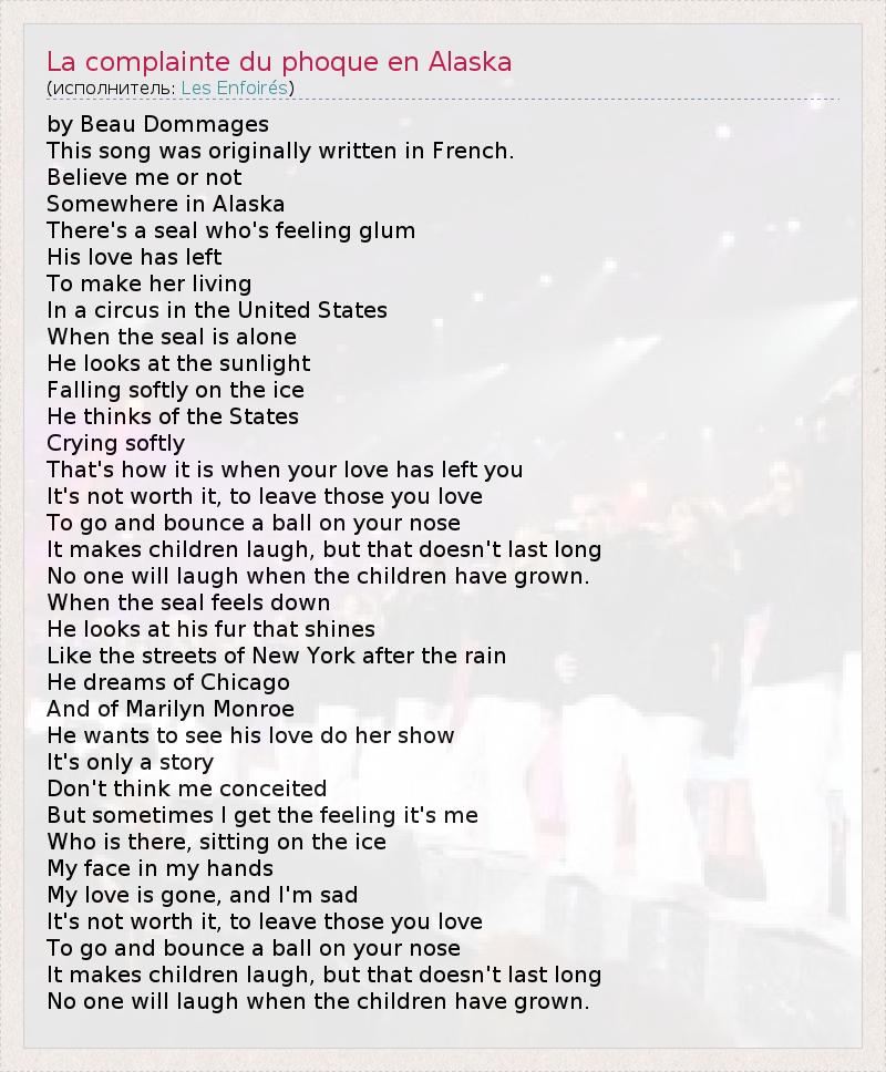 А как ты думаешь, о чем песня "La complainte du phoque en Alaska" ?