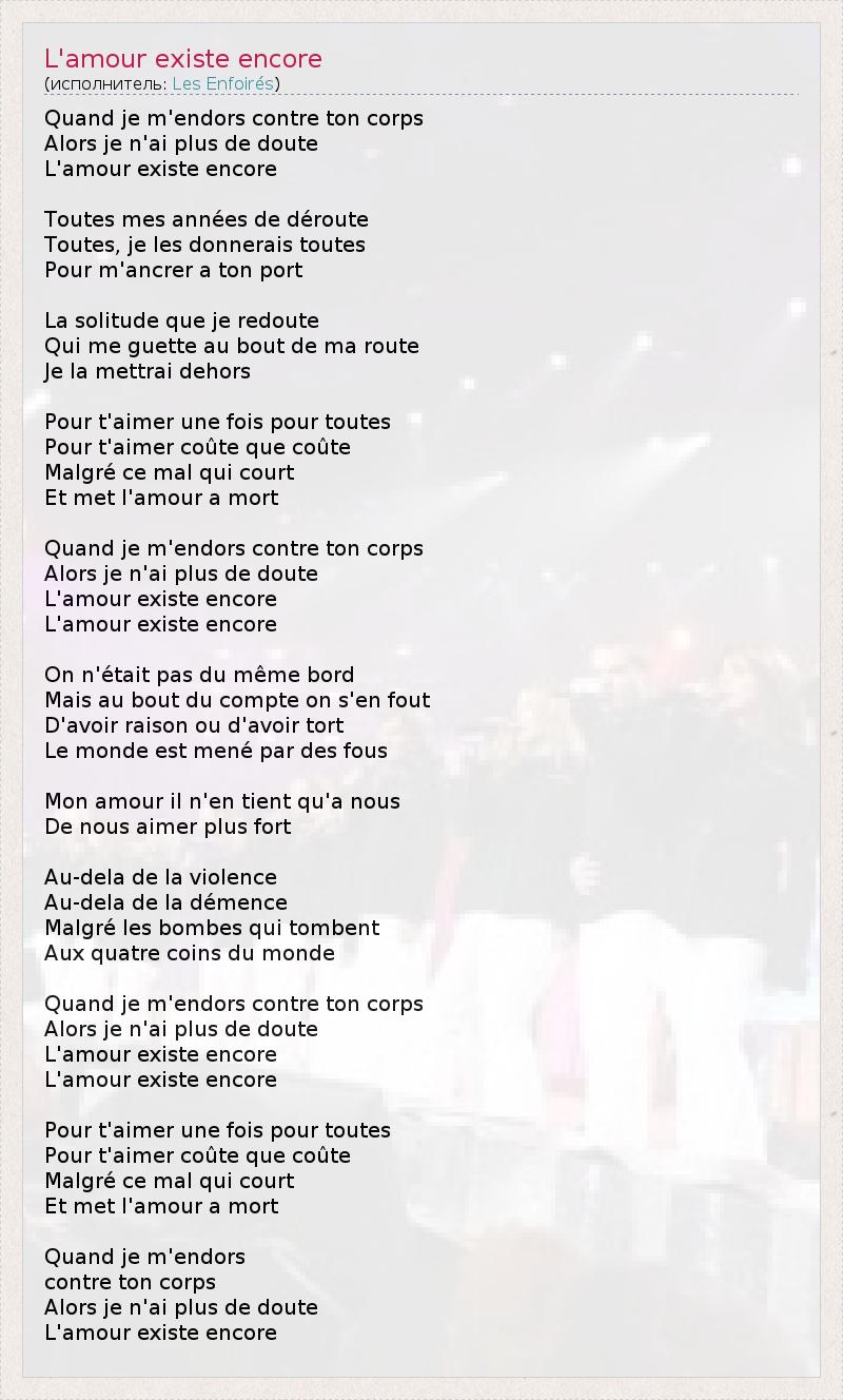 А как ты думаешь, о чем песня "L'amour existe encore" ?