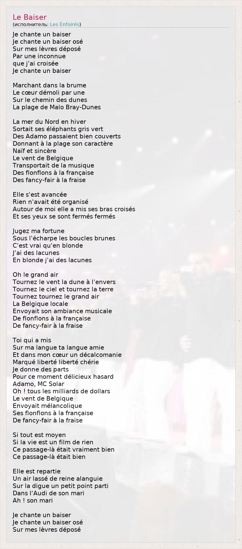 А как ты думаешь, о чем песня "Le Baiser" ?
