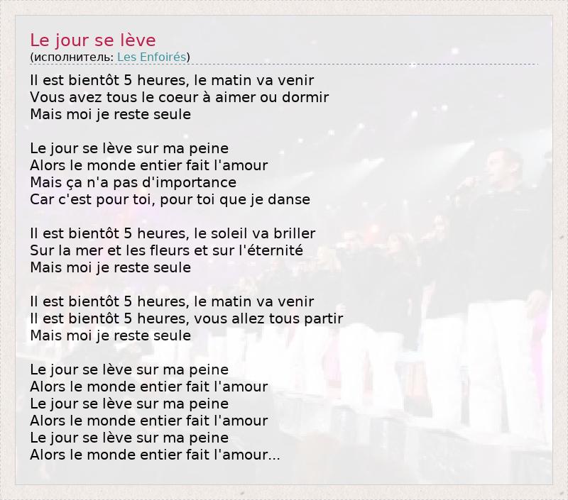 А как ты думаешь, о чем песня "Le jour se lève" ?