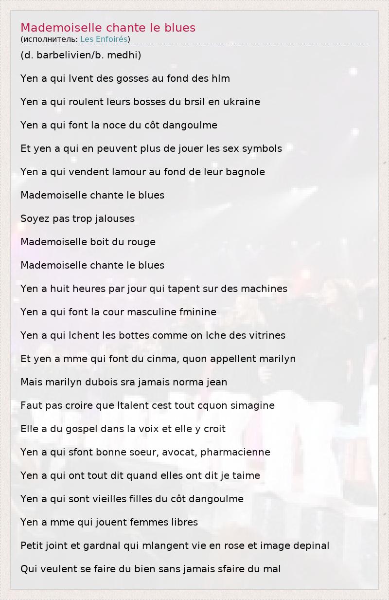 ГлавнаяИсполнителиLes EnfoirésMademoiselle chante le blues