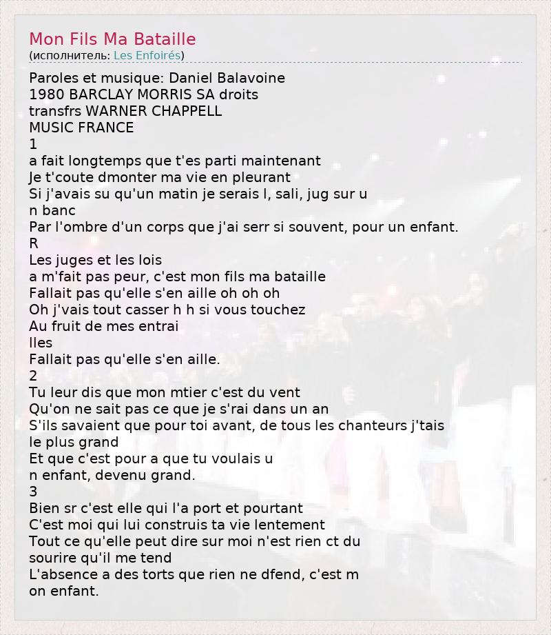 А как ты думаешь, о чем песня "Mon Fils Ma Bataille" ?