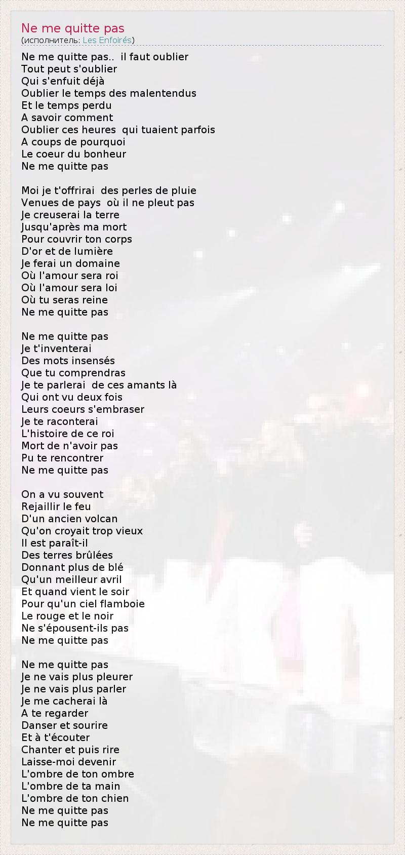 А как ты думаешь, о чем песня "Ne me quitte pas" ?