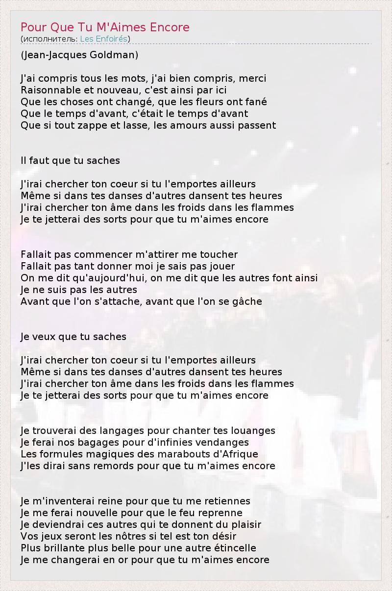 А как ты думаешь, о чем песня "Pour Que Tu M'Aimes Encore" ?