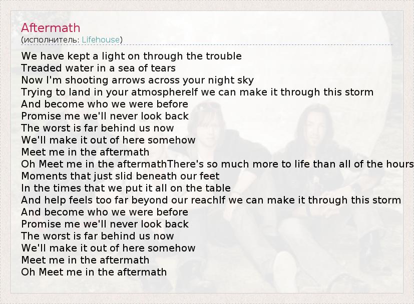 Oh Meet me in the aftermathThere's so much more to life than all of the hours