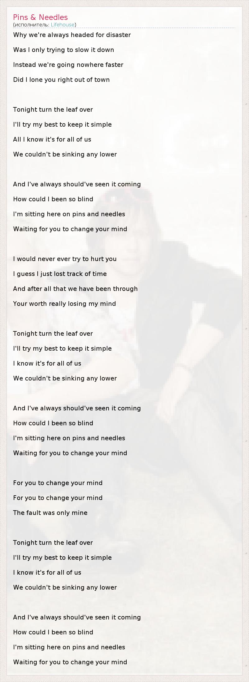 А как ты думаешь, о чем песня "Pins & Needles" ?