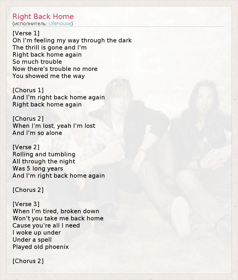 А как ты думаешь, о чем песня "Right Back Home" ?