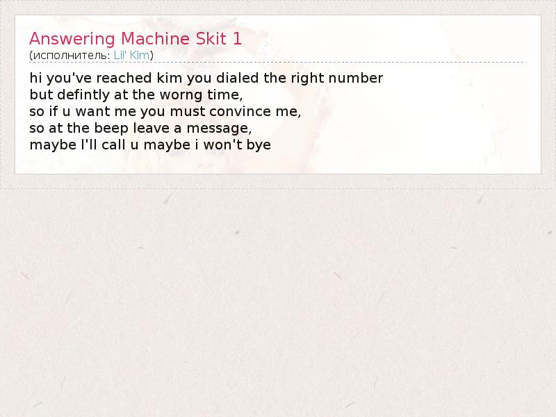 ГлавнаяИсполнителиLil' KimAnswering Machine Skit 1