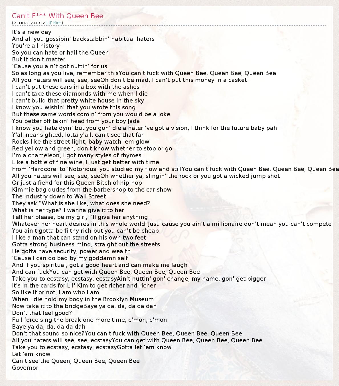А как ты думаешь, о чем песня "Can't F*** With Queen Bee" ?