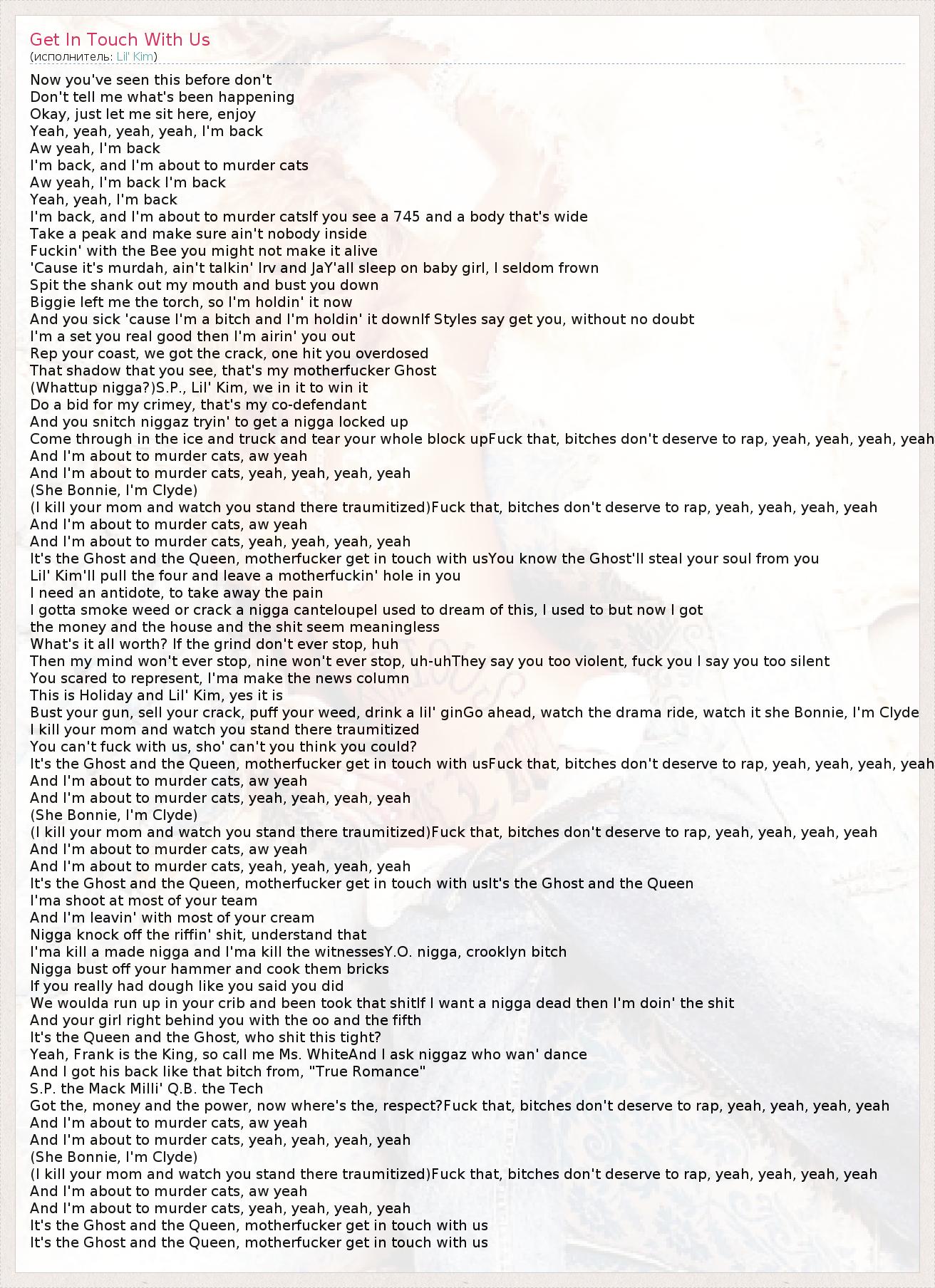 А как ты думаешь, о чем песня "Get In Touch With Us" ?