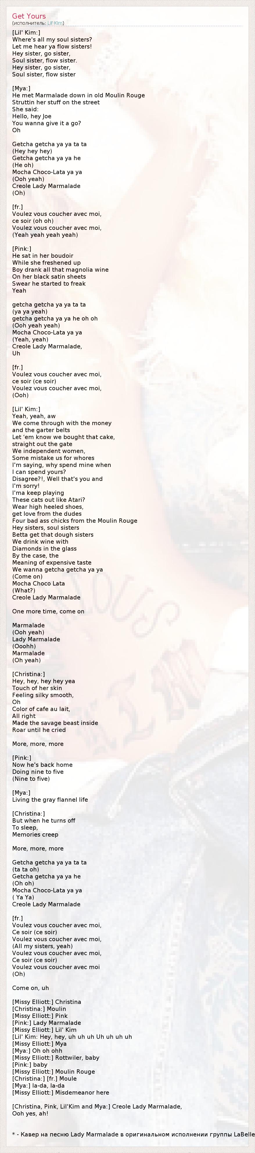 [Christina, Pink, Lil’ Kim и Mya:] Креолка Леди Мармелад