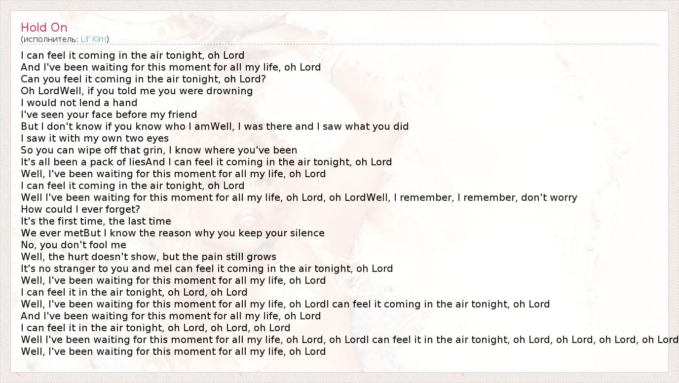 Well I've been waiting for this moment for all my life, oh Lord, oh LordI can feel it in the air tonight, oh Lord, oh Lord, oh Lord, oh Lord