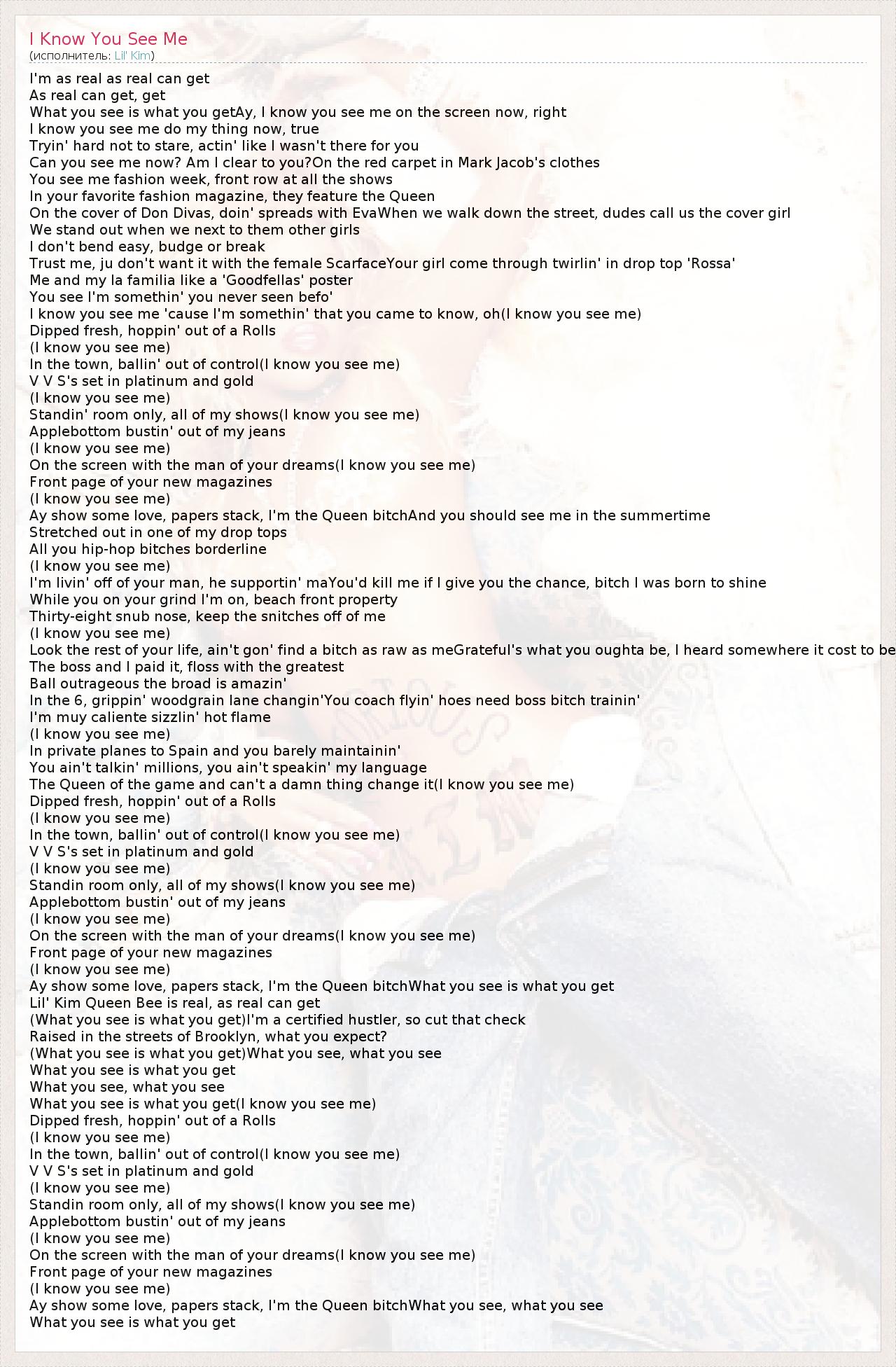 А как ты думаешь, о чем песня "I Know You See Me" ?