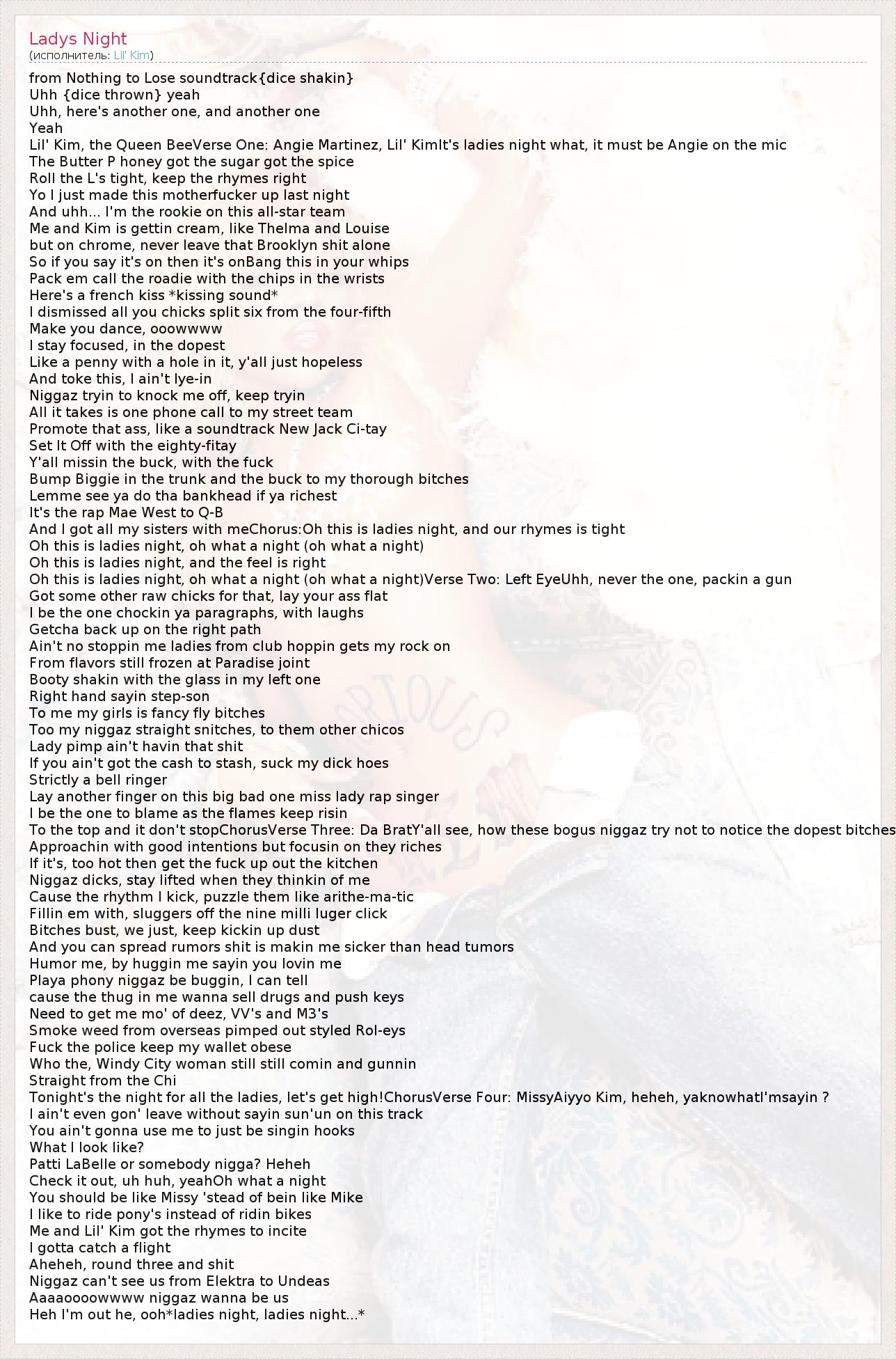 And I got all my sisters with meChorus:Oh this is ladies night, and our rhymes is tight