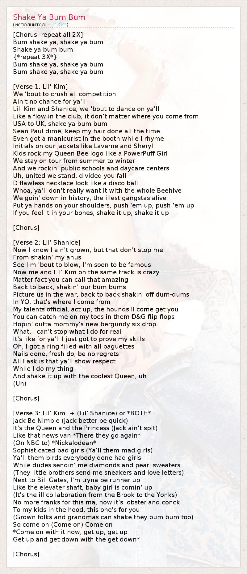 А как ты думаешь, о чем песня "Shake Ya Bum Bum" ?