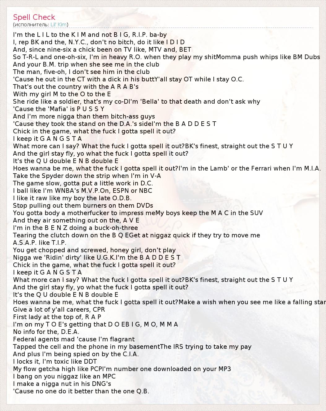 And the girl stay fly, yo what the fuck I gotta spell it out?