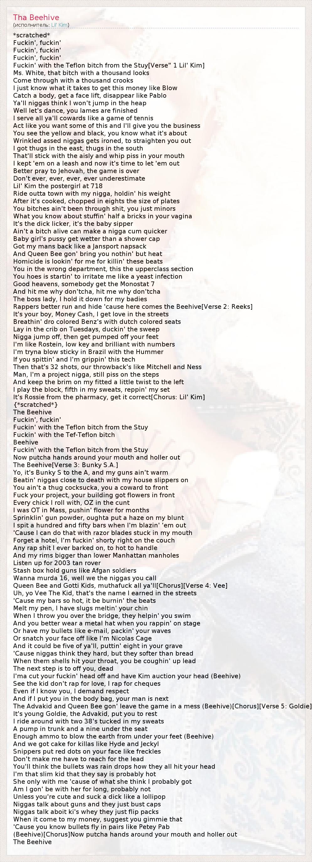 А как ты думаешь, о чем песня "Tha Beehive" ?