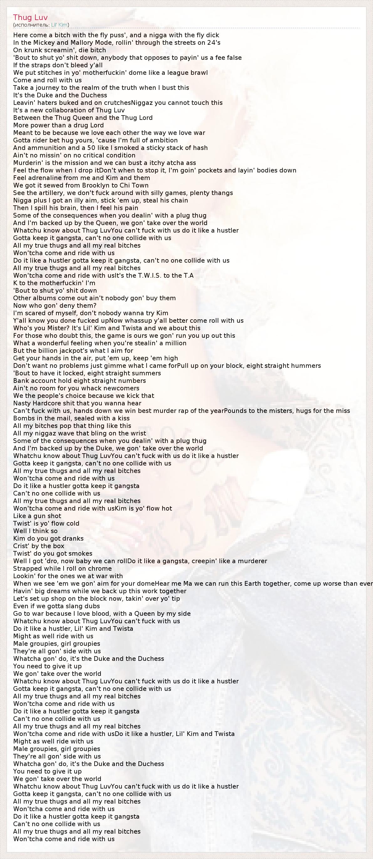 А как ты думаешь, о чем песня "Thug Luv" ?