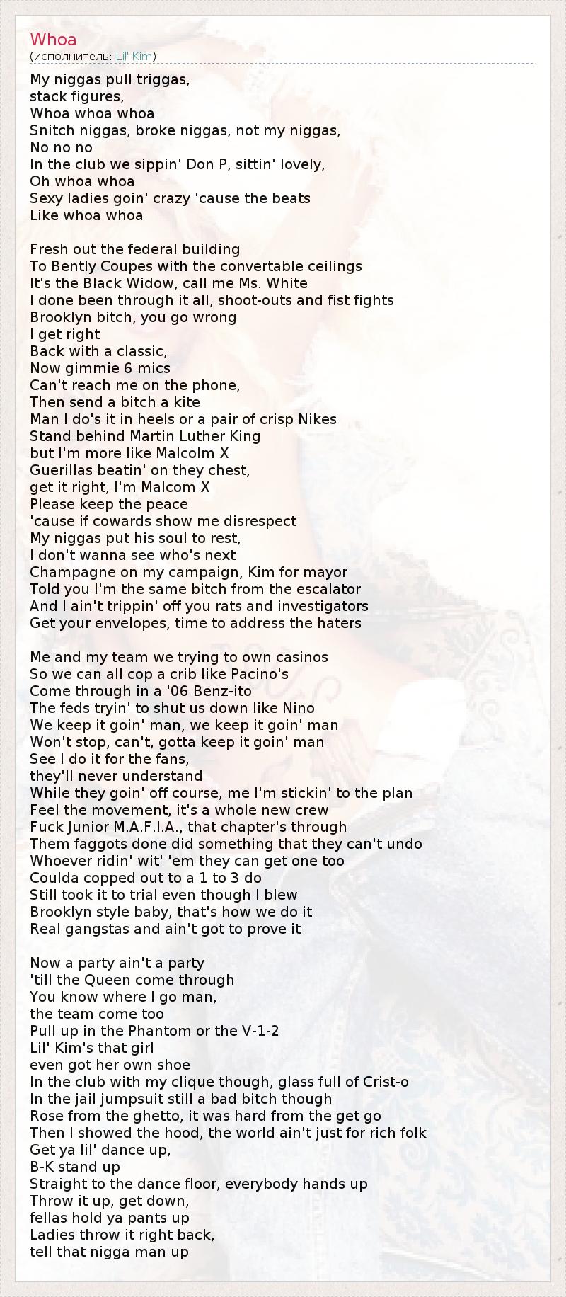 Это интересно:Имя: Kimberly Denise Jones.Псевдоним: Lil' Kim.Дата и место рождения: 11 июля 1975 года, Бруклин, Нью-Йорк.После развода родителей, когда Ким было 9 лет, она стала жить с отцом. Изначально Ким и ее старший брат Кристофер, жили с матерью, до тех пор, пока опека над детьми не была передана её отцу. Ким была непослушным ребёнком, но ей приходилось жить по строгим правила её отца, из-за чего, они постоянно... продолжение