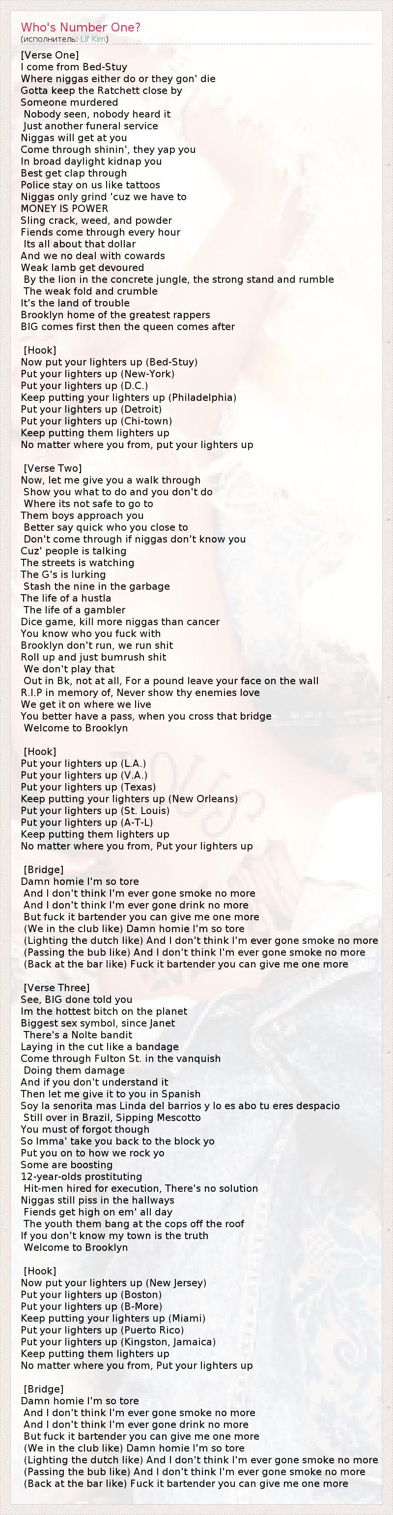 А как ты думаешь, о чем песня "Who's Number One?" ?