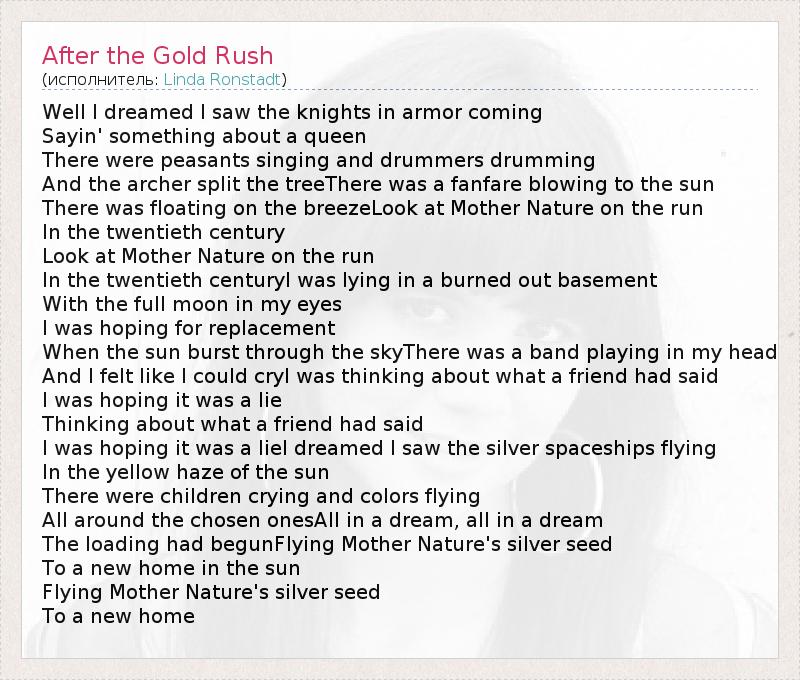 А как ты думаешь, о чем песня "After the Gold Rush" ?