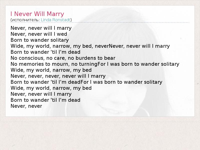 А как ты думаешь, о чем песня "I Never Will Marry" ?