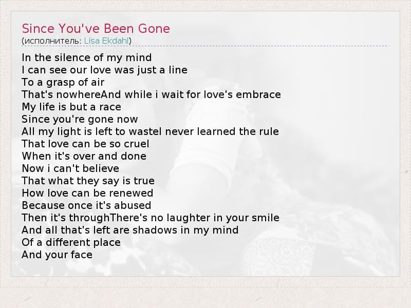 А как ты думаешь, о чем песня "Since You've Been Gone" ?
