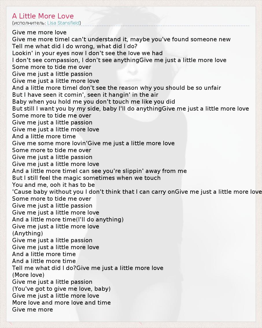 А как ты думаешь, о чем песня "A Little More Love" ?