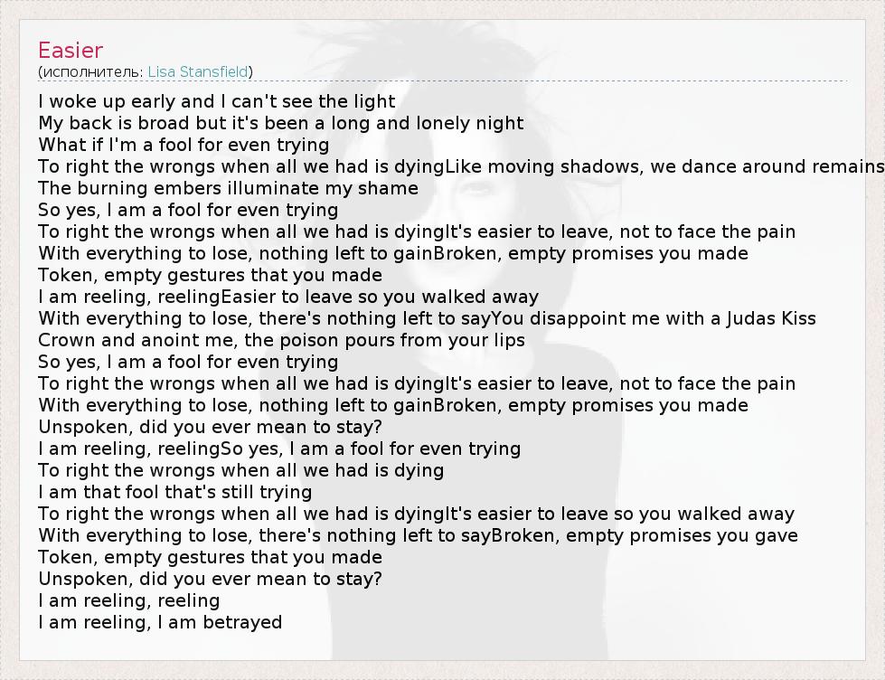 To right the wrongs when all we had is dyingIt's easier to leave so you walked away