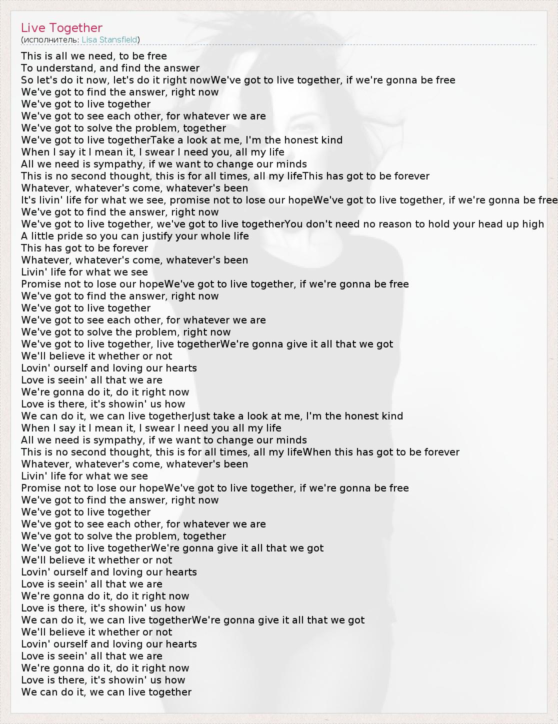 А как ты думаешь, о чем песня "Live Together" ?