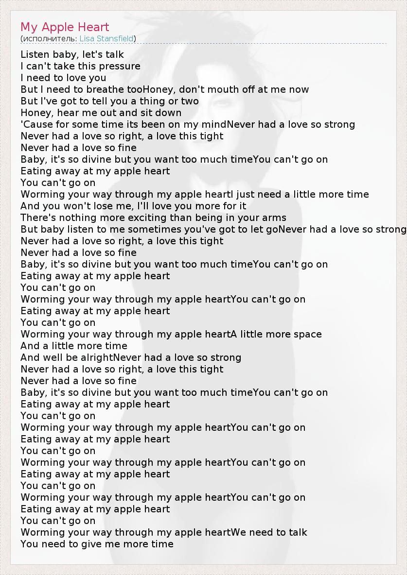 А как ты думаешь, о чем песня "My Apple Heart" ?