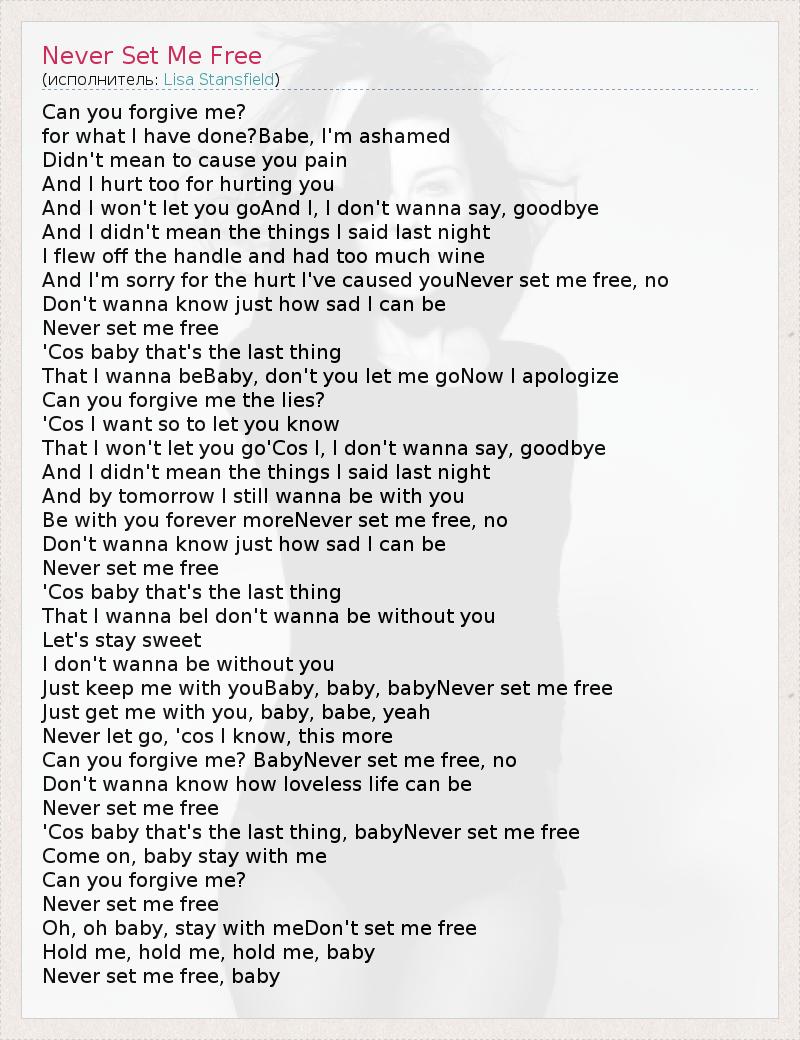 And I'm sorry for the hurt I've caused youNever set me free, no
