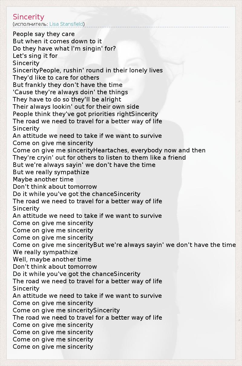 Come on give me sincerityBut we're always sayin' we don't have the time