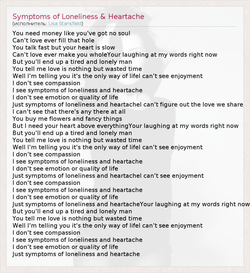 А как ты думаешь, о чем песня "Symptoms of Loneliness & Heartache" ?