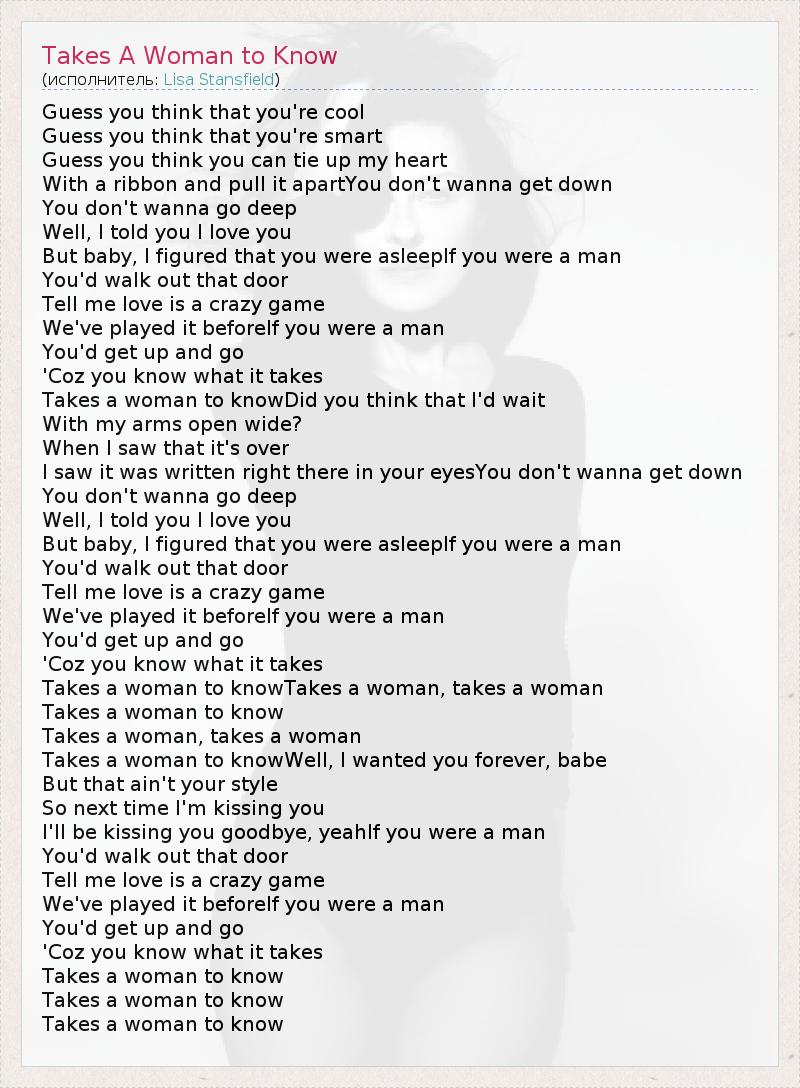 А как ты думаешь, о чем песня "Takes A Woman to Know" ?