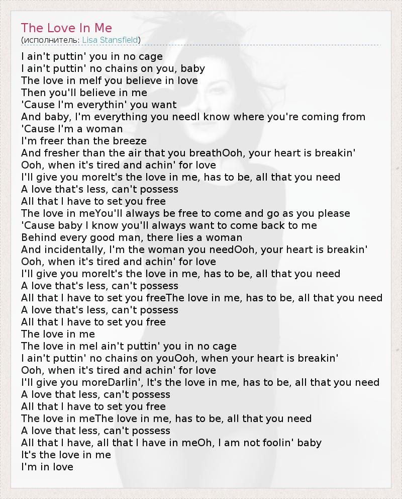 А как ты думаешь, о чем песня "The Love In Me" ?