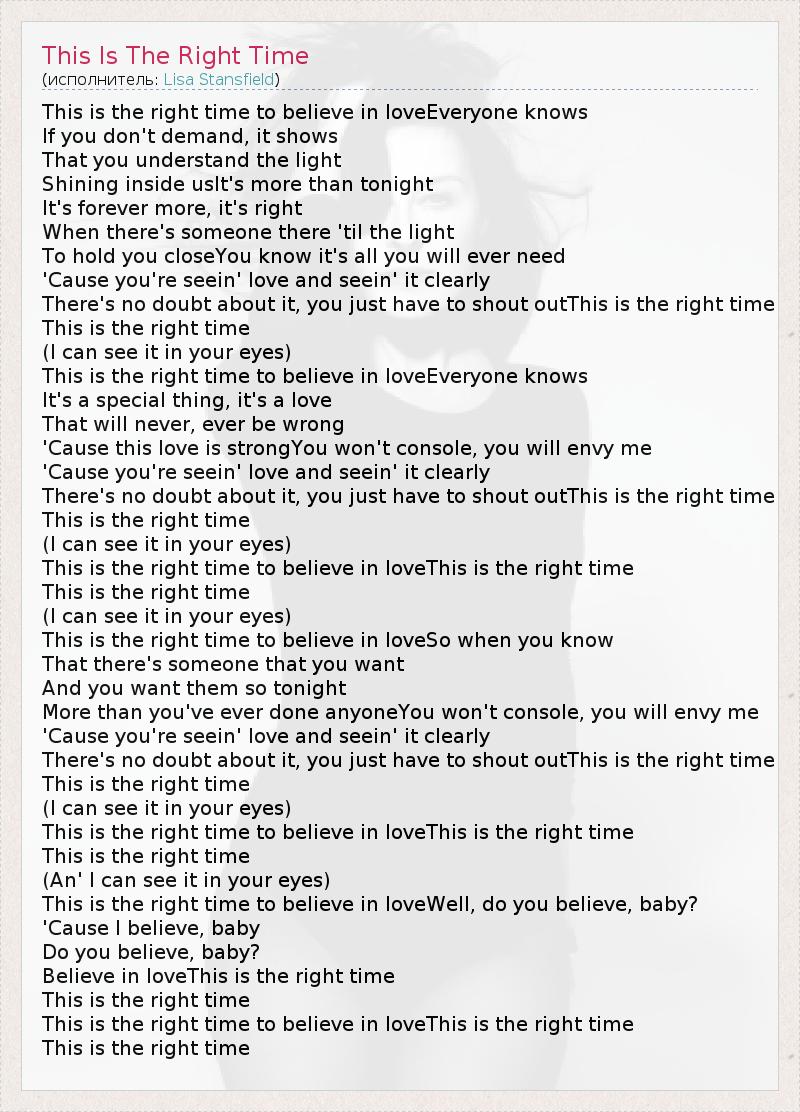 А как ты думаешь, о чем песня "This Is The Right Time" ?