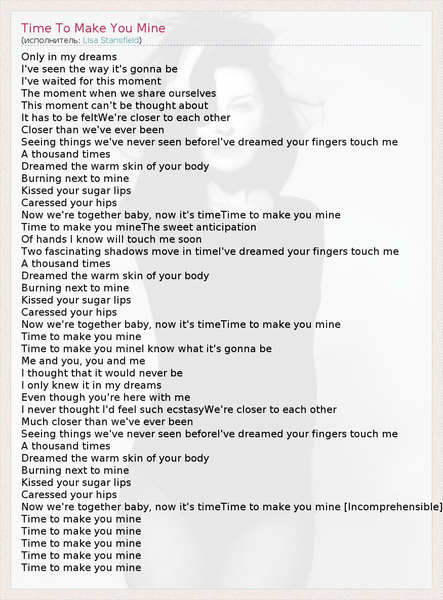 А как ты думаешь, о чем песня "Time To Make You Mine" ?