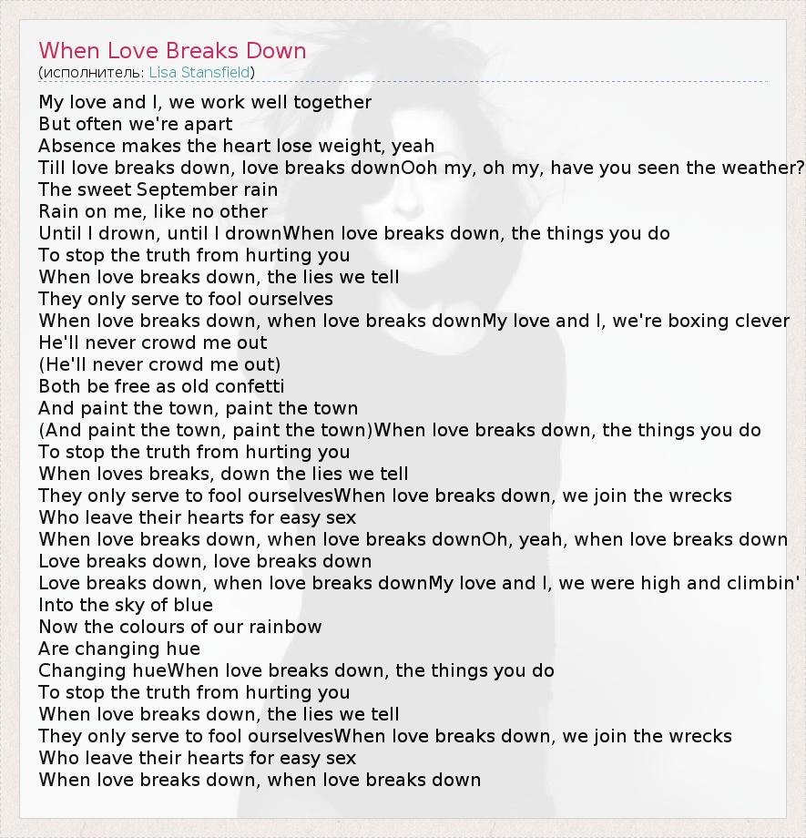 When love breaks down, when love breaks downOh, yeah, when love breaks down