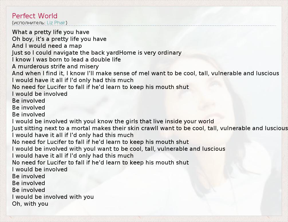I would be involved with youI want to be cool, tall, vulnerable and luscious